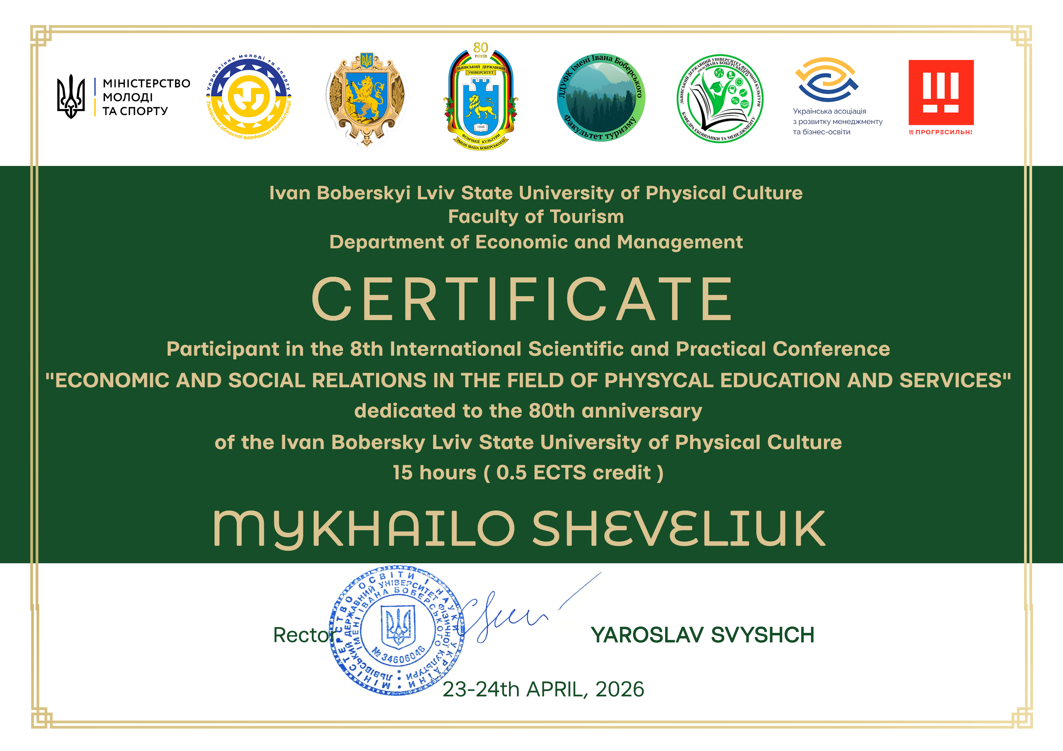 Українська школа гостинності продовжує активно долучатися до формування майбутнього сфери обслуговування в Україні. Днями наш керівник, доктор філософії з культурології Михайло Шевелюк, виступив спікером на масштабній VIII Міжнародній науково-практичній конференції «Економіко-соціальні відносини в галузі фізичної культури та сфері обслуговування».
